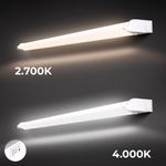 - Ihre Arbeitsfläche wird durch die weiße LED Küchenleuchte mit 450 Lumen und 8 Watt hell erleuchtet. Die Unterbaulampe strahlt per Kippschalter wahlweise mit 2.700K in warmweiß oder mit 4.000 Kelvin in neutralweiß.