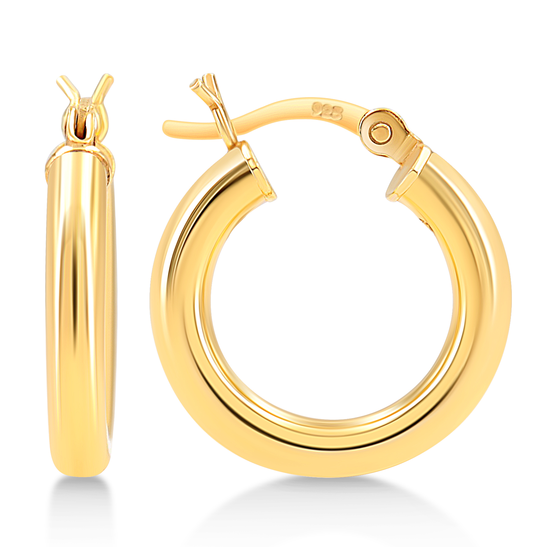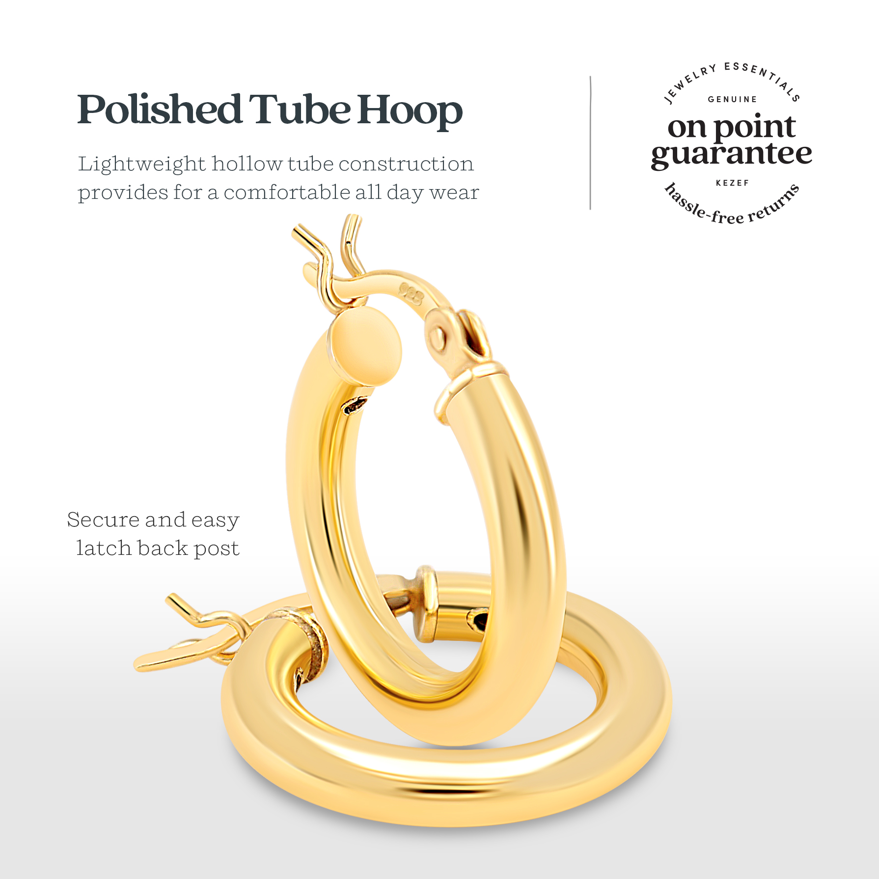 An all time classic, the 14k yellow gold plated earrings are finished with a high polish. These tube hoop earrings are available in many sizes. The click top closure ensures it will fit securley. Kezef hoop earrings are a delightful addition to any wardrobe.
