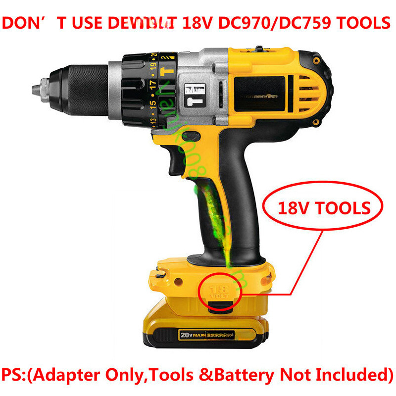 Do not use adapter with premium batteries (DCB200, DCB204, DCB204BT, DCB205, XR) in 18V Compact drills DC970, DC759.