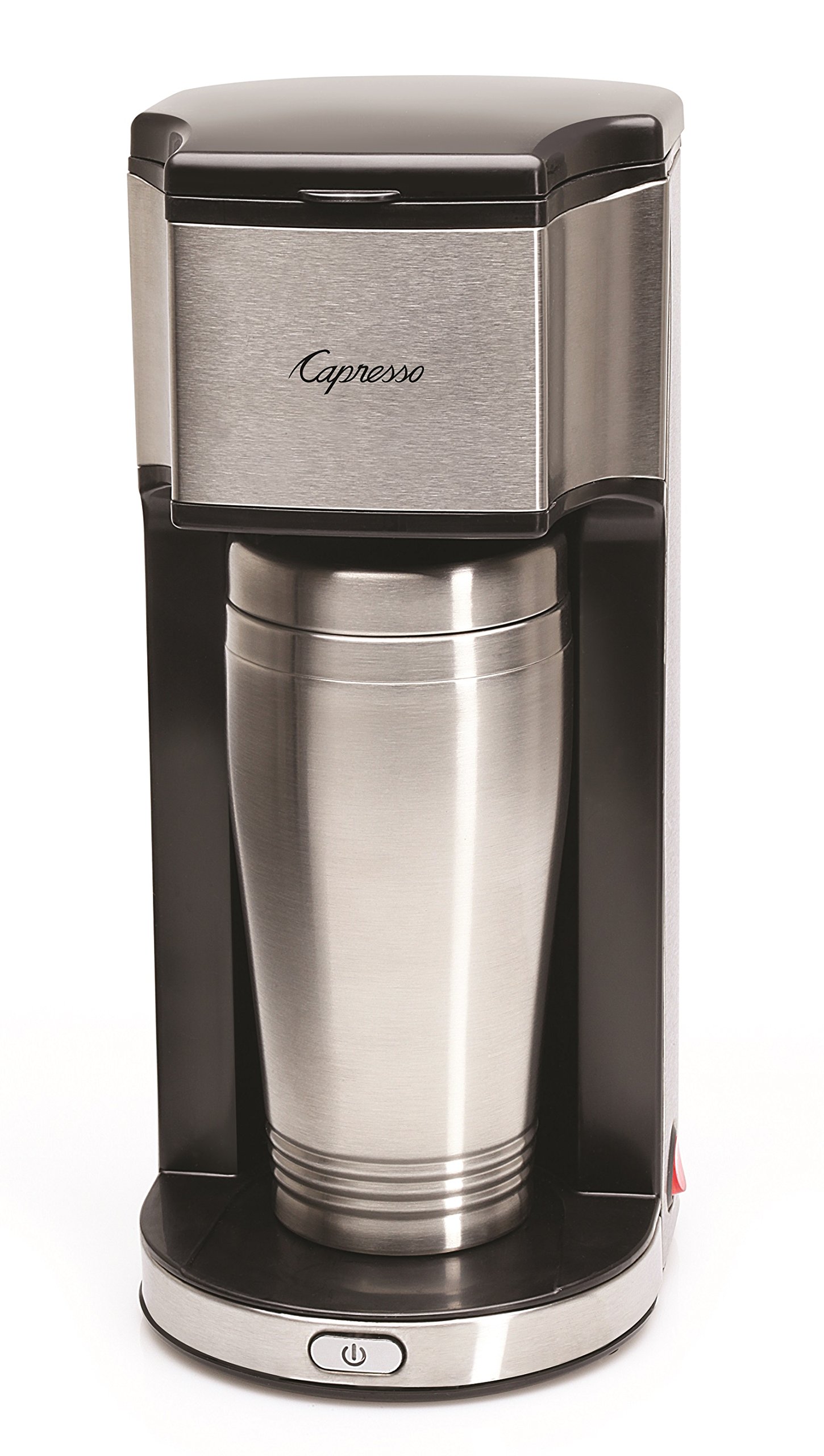 The On-the-Go Personal Coffee Maker keeps up with your busy lifestyle by quickly brewing coffee directly into the stainless steel insulated thermal travel mug so you never have to leave your brew behind.
