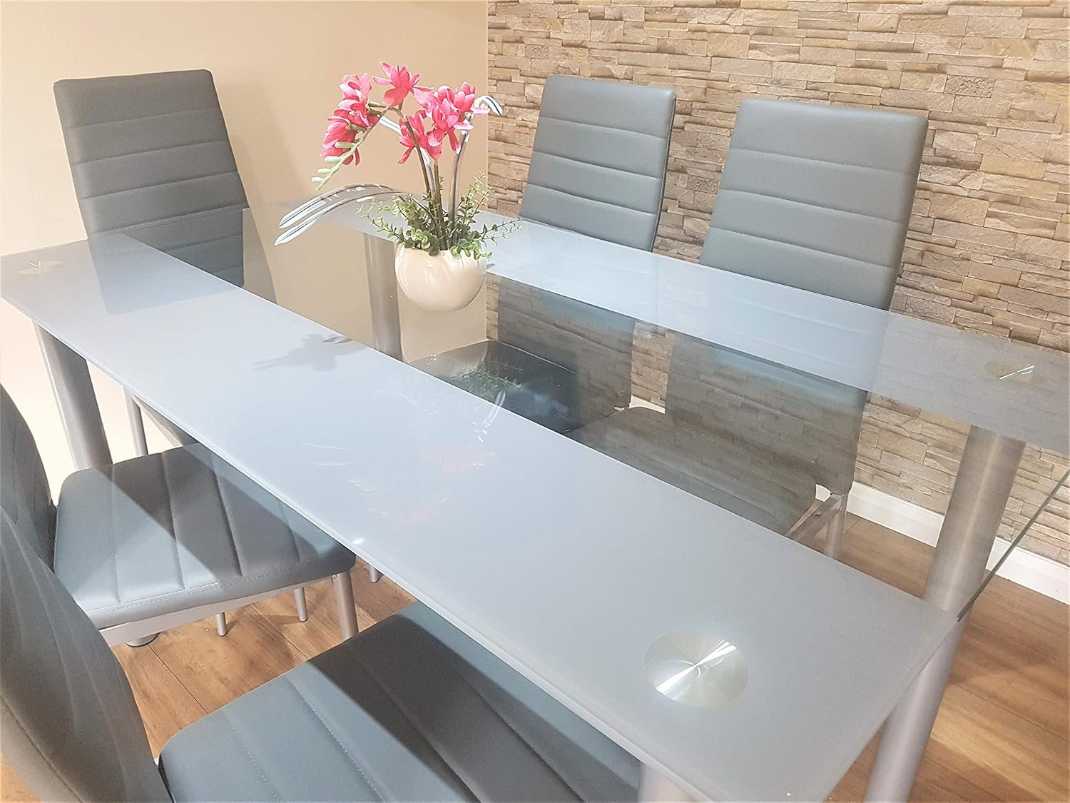 Stunning Glass Dining Table set with 6 gorgeous Faux leather chairs