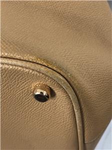 Condition is good with some minor defects. Slightly color faded on the bottom corner of the bag. Small stain inside the interior lining. Small lined pen mark on the exterior leather. (Please see pictures for it). Both interior and exterior are clean. No other visible damage or defects.