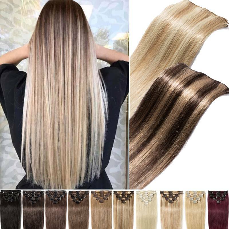 CLEARANCE Clip in 100% Real Human Hair Extensions Full Head 8pcs Blonde 10"-24"