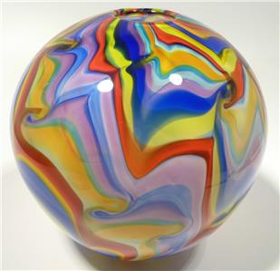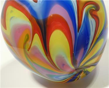 HAND BLOWN GLASS ART VASE, DIRWOOD, MADE WITH COMPLEX MURANO CANE PROCESS (#254349152505)