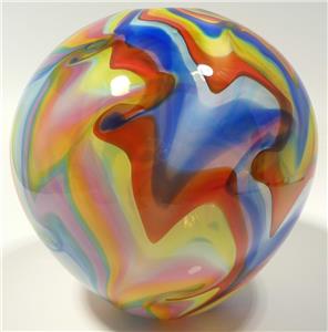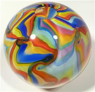 20" HAND BLOWN GLASS ART WALL BOWL PLATTER, DIRWOOD, YELLOW, RED, BLUE, GREEN (#263409121476)