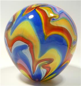 HAND BLOWN GLASS ART SCULPTURAL VASE, DIRWOOD, END OF DAY, RED BLUE CLEAR MORE (#263525685010)