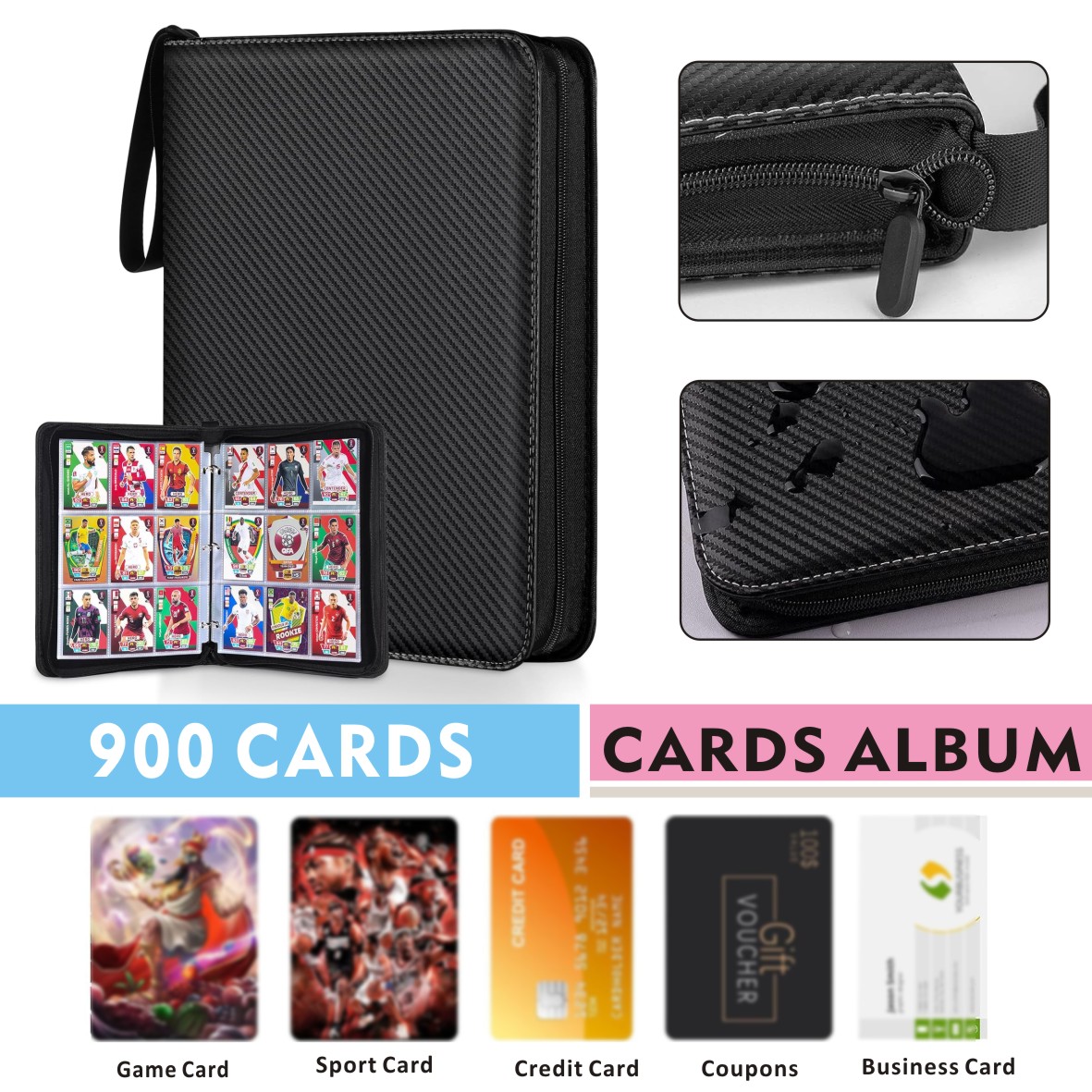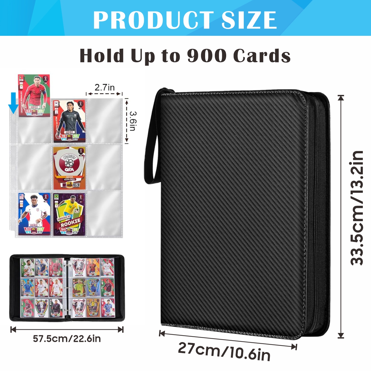 - Trading cards album 9 Pockets per page, double-sided design, 50 sheets can hold 900 cards