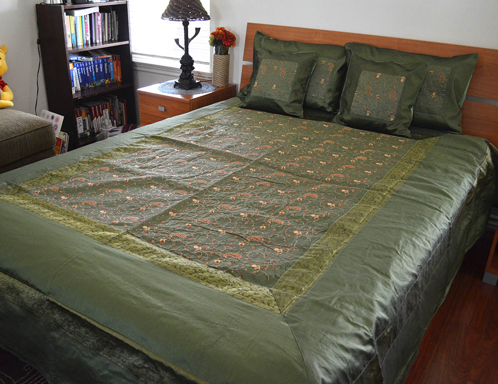 Silk Bed Cover/Bed Sheet Pillow Cover Set Embroidered full/Queen Size