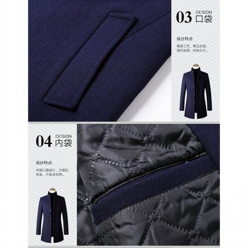 Mens Stand collar Trench Coat Wool Blend Jacket Single Breasted Outwear Casual L