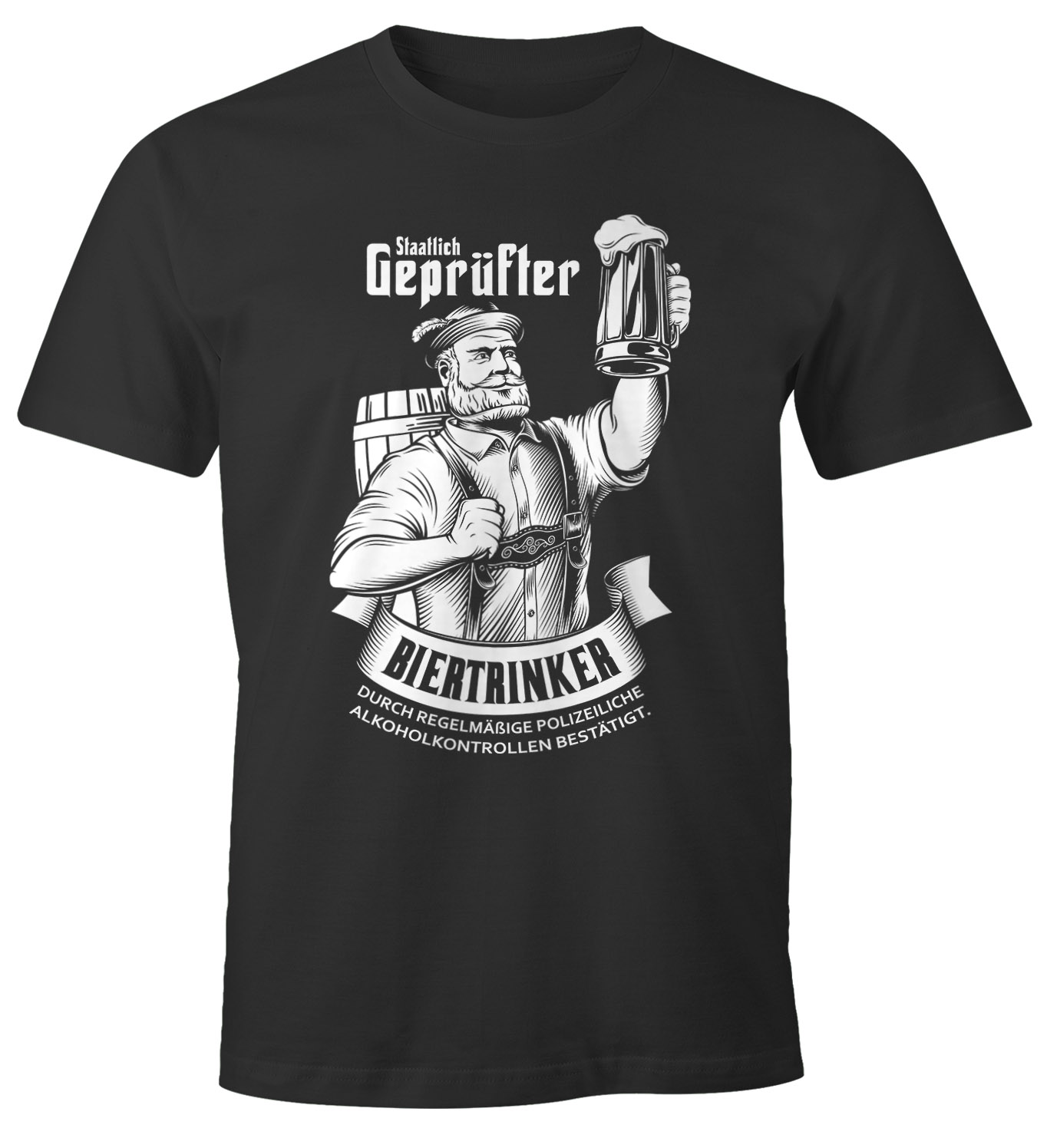 Das Herren Shirt “Staatlich geprüfter Biertrinker durch regelmäßige polizeilische Alkoholkontrollen bestätigt” der Marke MoonWorks®, sticht mit seinem eindrucksvollen und stilgerechten Eyecatcher Motiv aus der breiten Masse hervor und sorgt für lustigste Reaktionen und Lacher auf jeder Party.