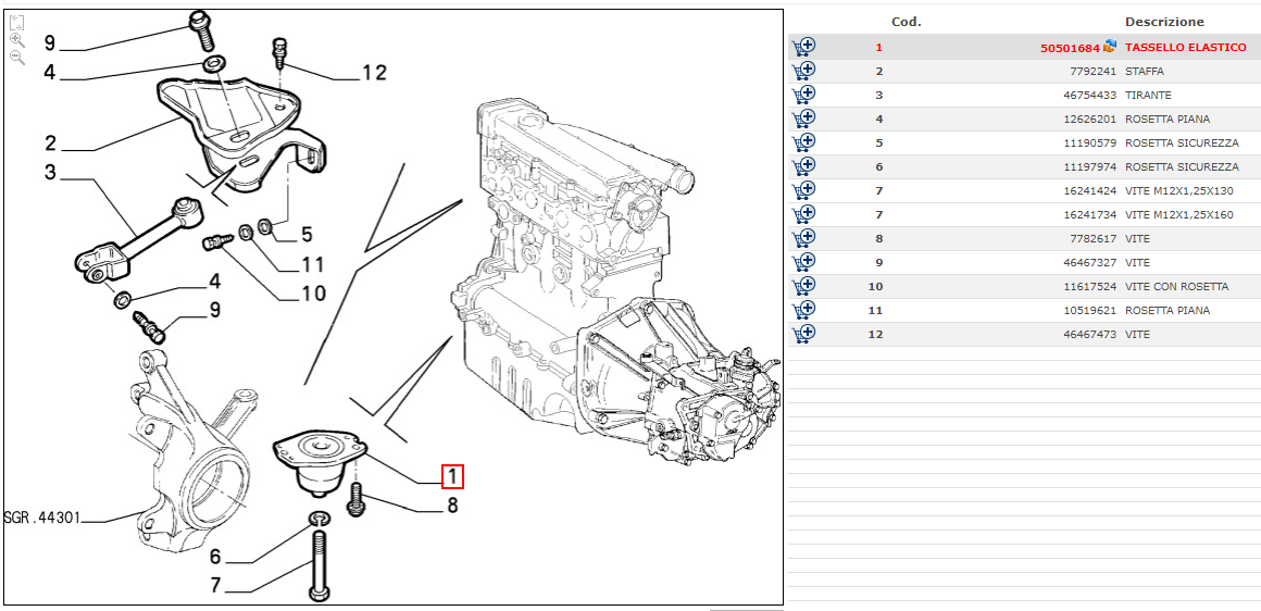 TASSELLO SUPPORTO ELASTICO SOSPENSIONE ANTERIORE MOTORE PER ALFA ROMEO 147 156 FIAT BRAVO MAREA LANCIA LYBRA 1.9 JTD