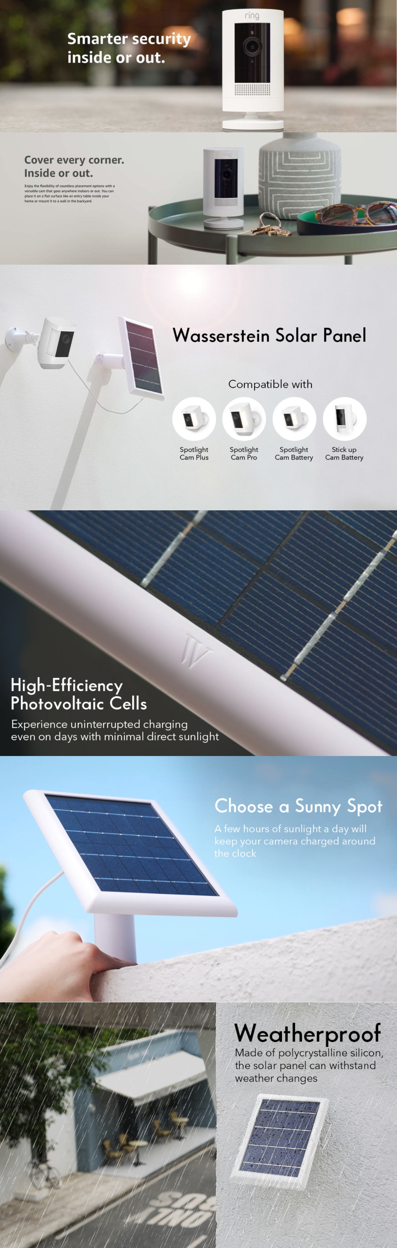 Includes: Three (3) Ring Stick Up Cam Battery & Three (3) Wasserstein Ring Solar Panel in White