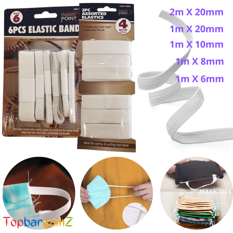 Available in assorted sizes, one pack contains 2 x (2m x 20mm) which makes it 4m in total; and a pack of 6 elastic bands of 1m length and a range of 20mm to 6mm in width to meet all your needs of sewing, crafting and DIY.