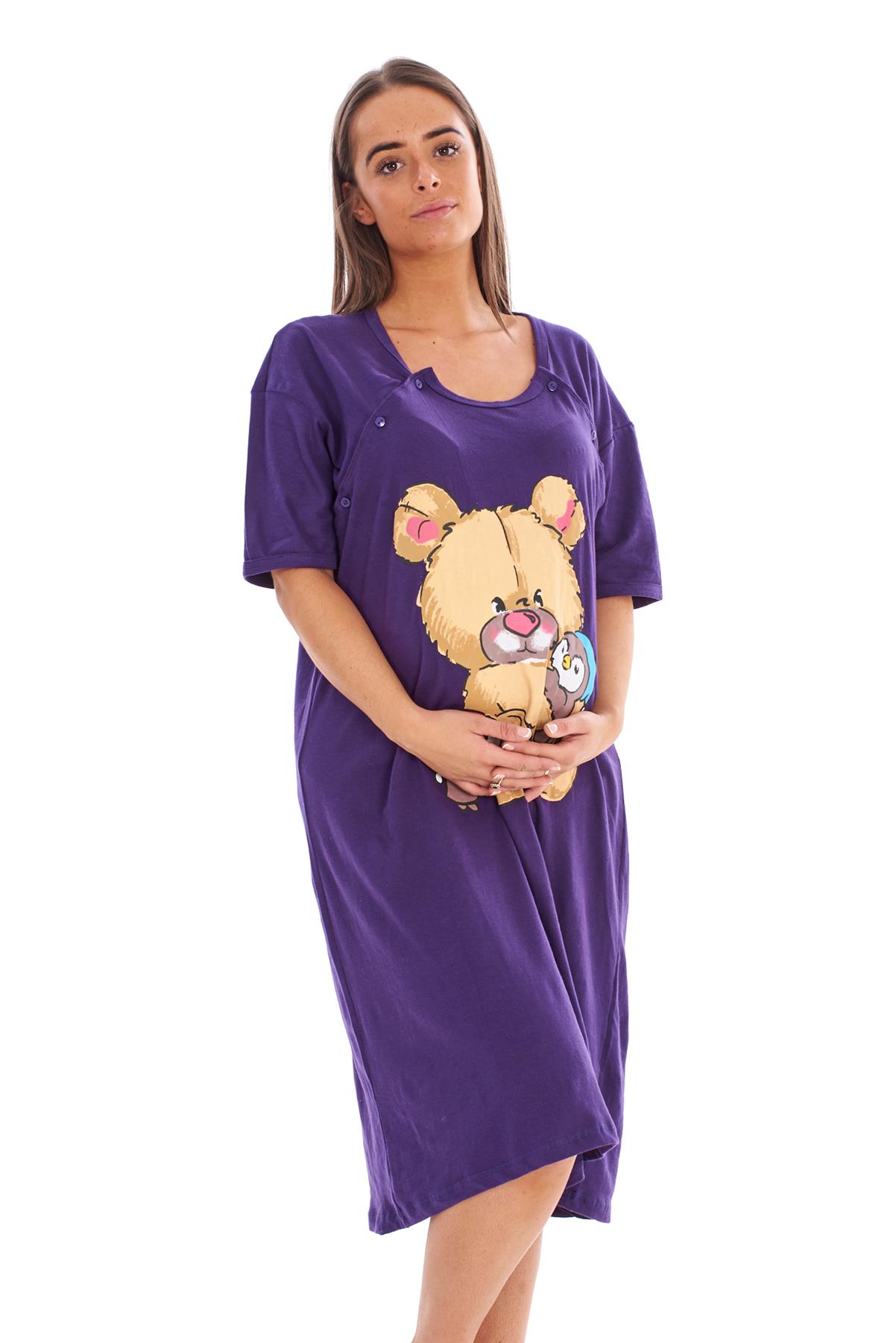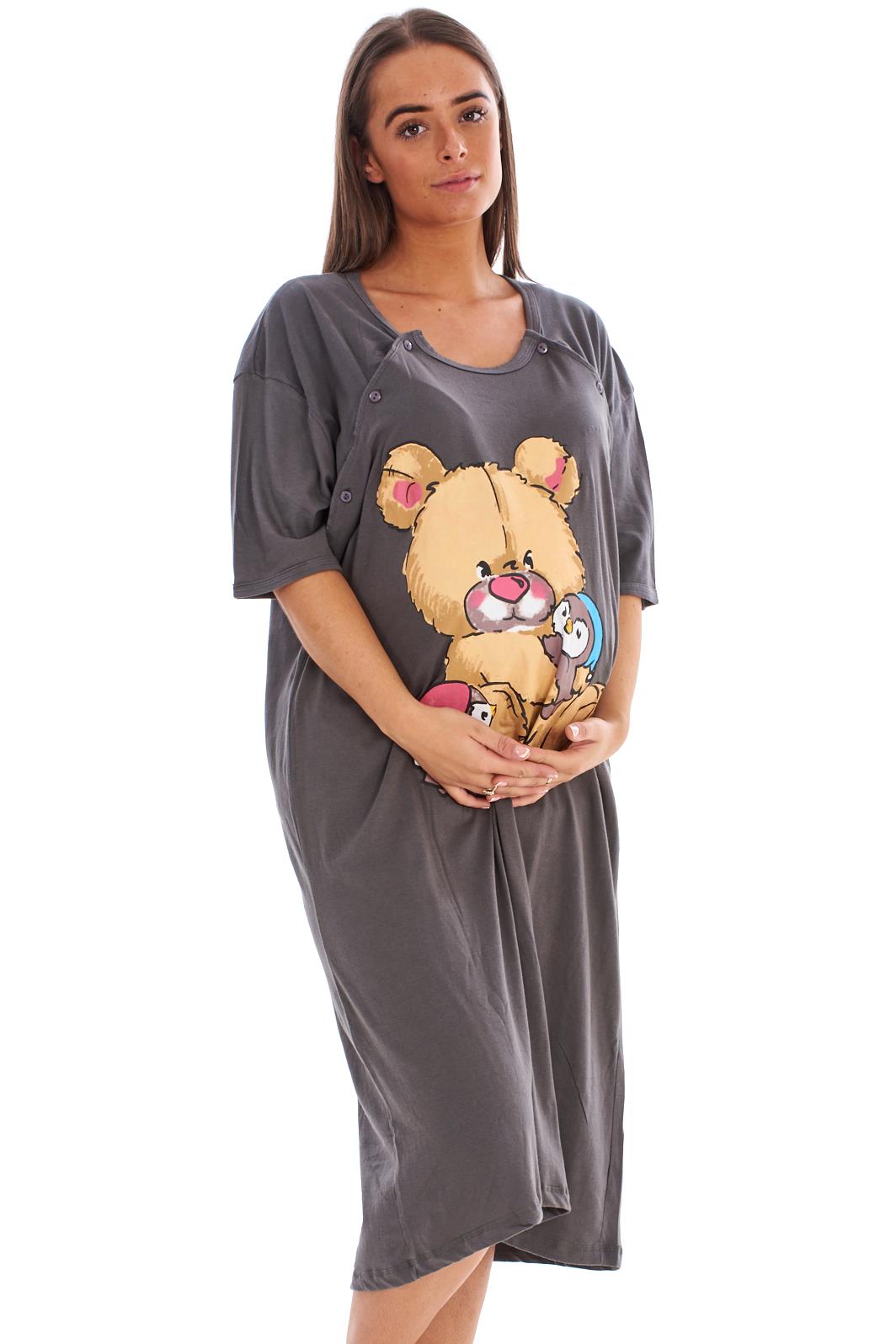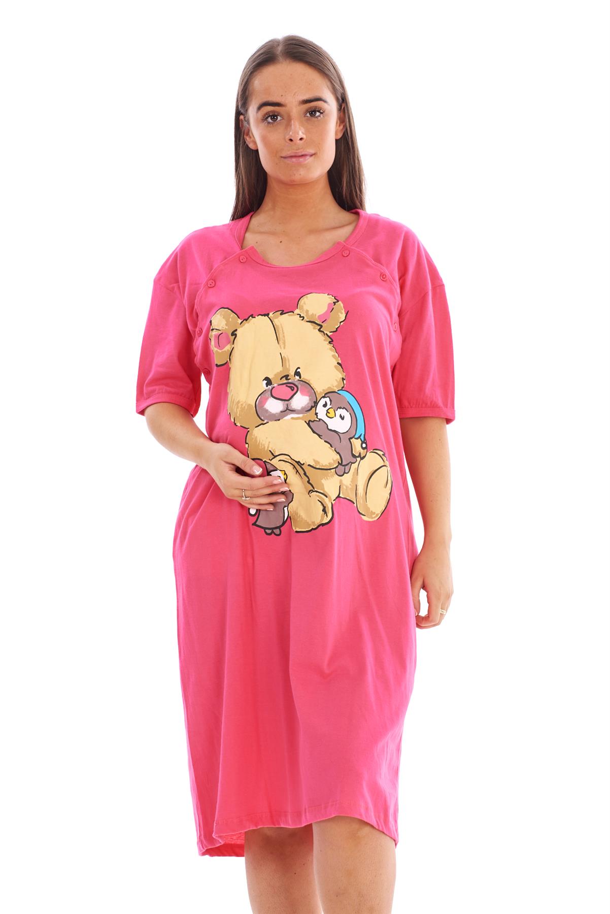 - Ladies Maternity Nightdress 100% Cotton Printed Motif Breastfeeding Button labor