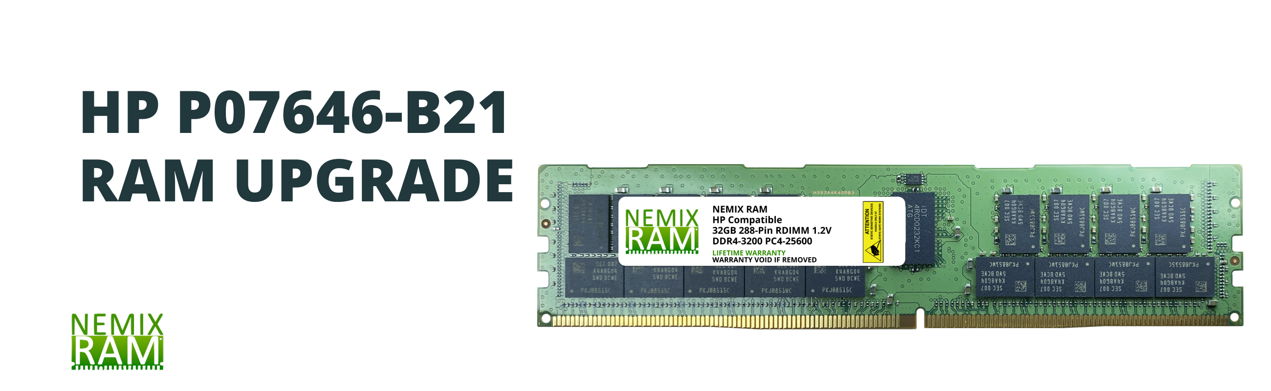 HP/HPE P07646-B21 32GB DDR4 3200 PC4 25600 1.2V 2Rx4 ECC Registered RDIMM Memory RAM Upgrade by NEMIX RAM.100% Compatible with HP Part Number P07646-B21.