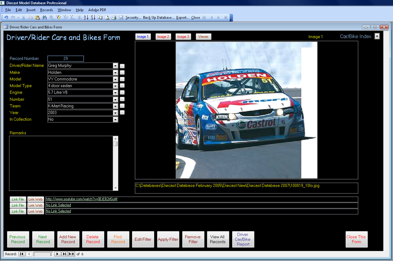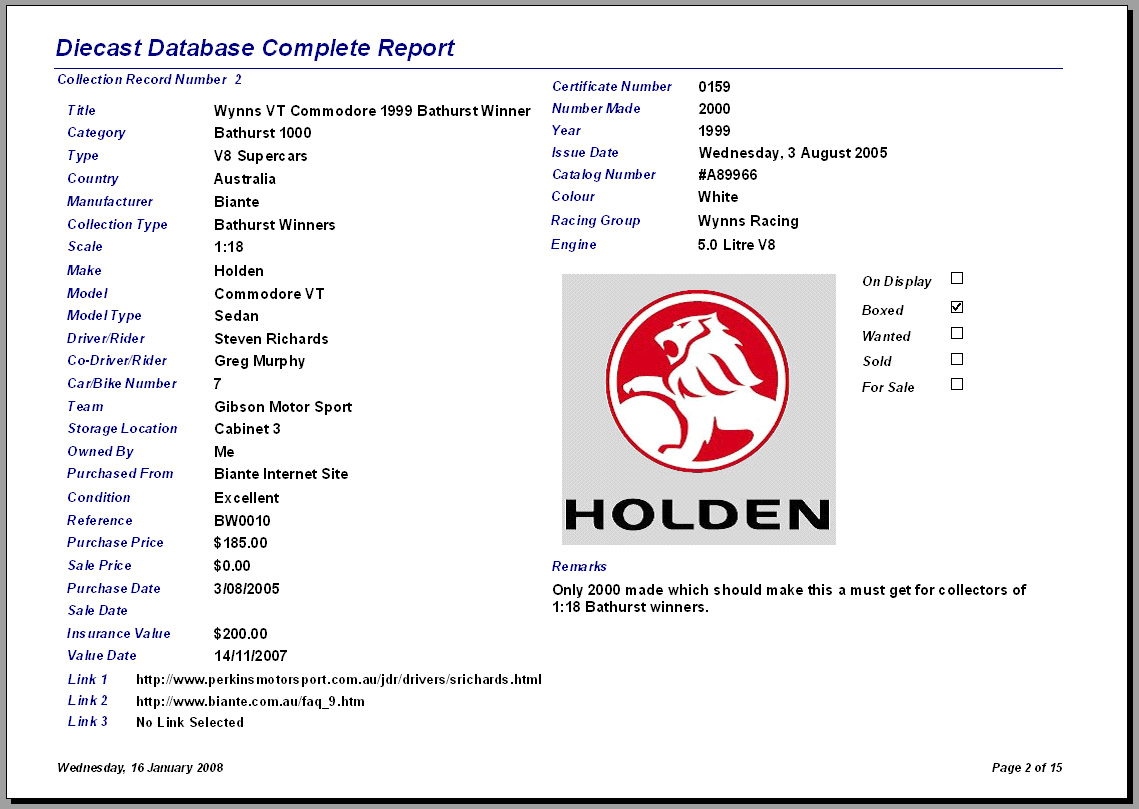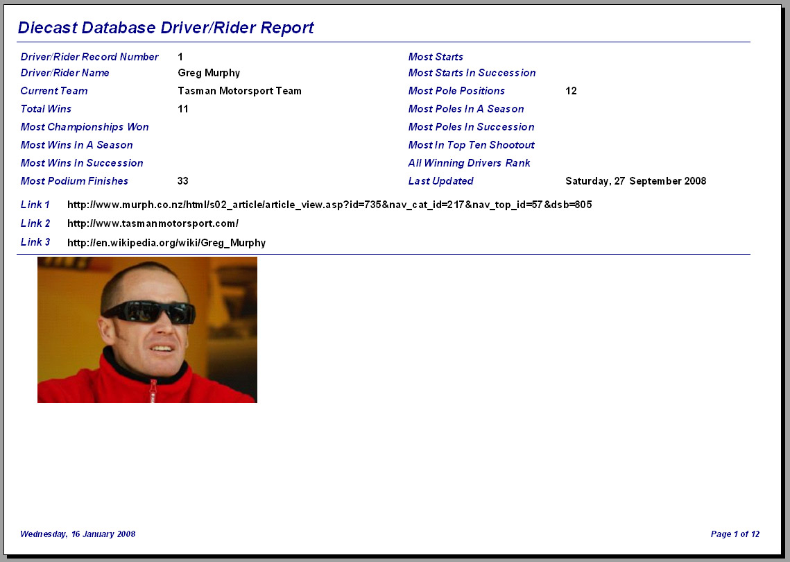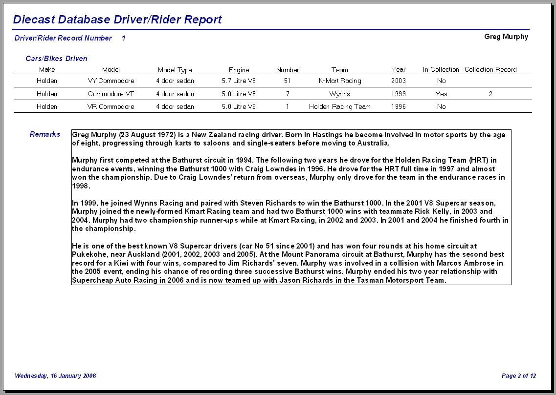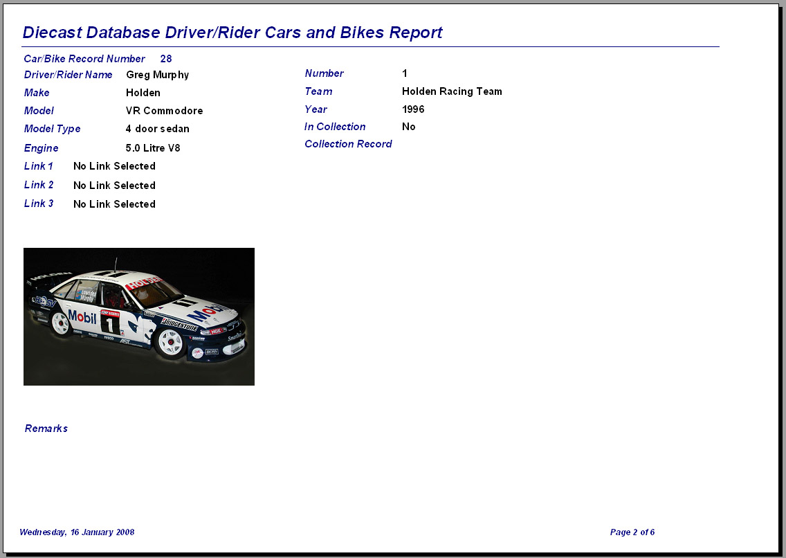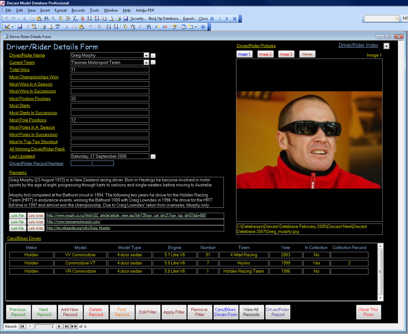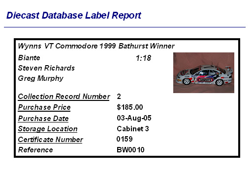 Allows you to keep a record of your diecast collection with driver/rider details including images in one simple to use package.