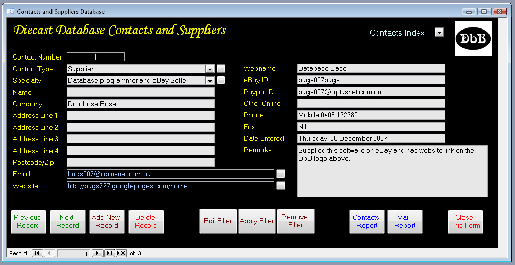 NEW CONTACTS AND SUPPLIERS FORM WITH REPORTS TOO !