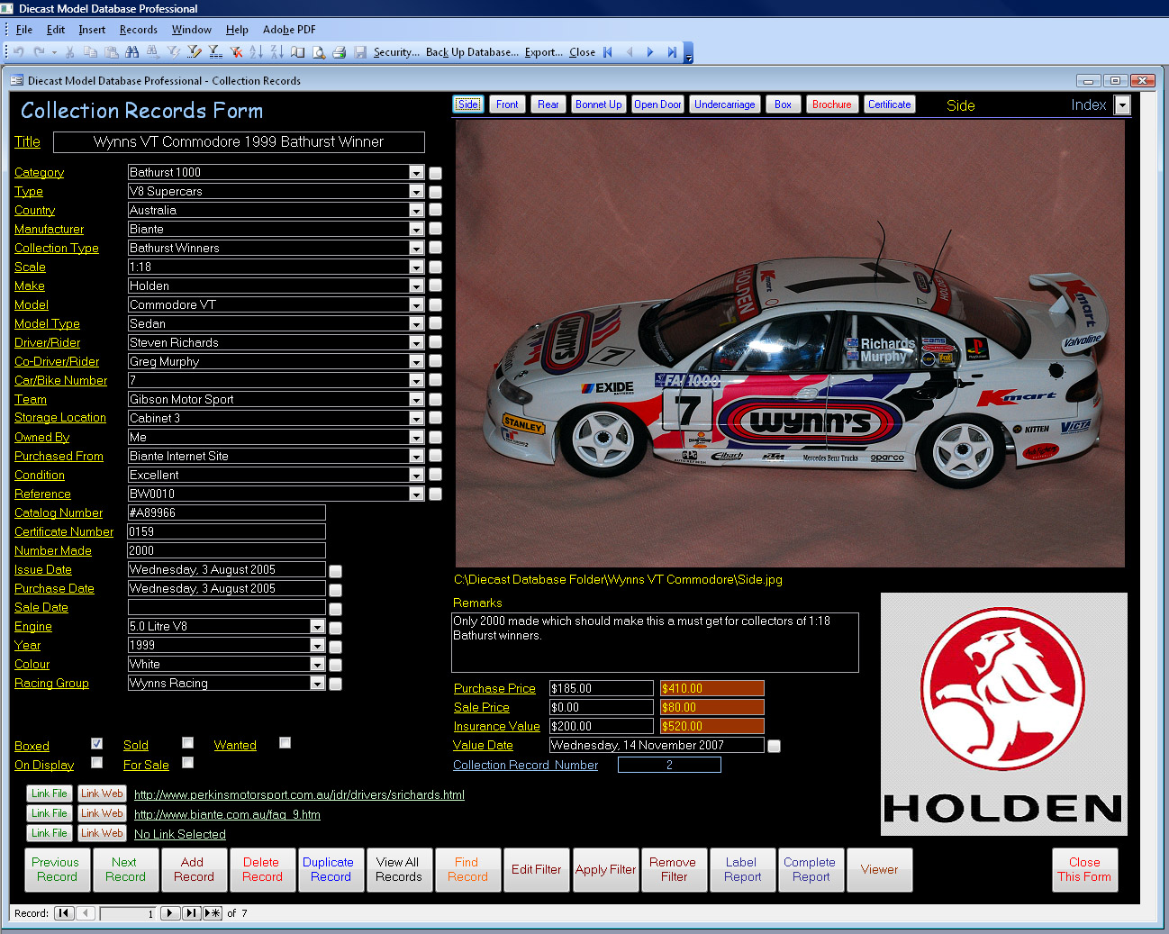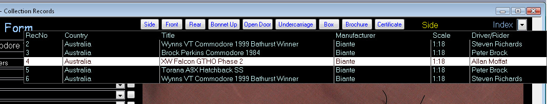 • Example records below show use for Australian cars. The program can be used for any diecast cars or bikes from any country.