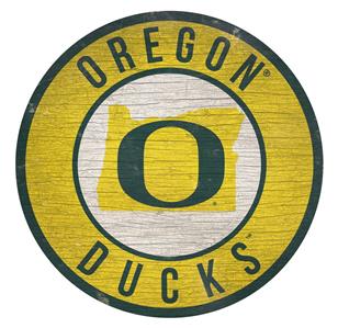 Oregon Ducks 12 Inch Wood Sign Round State Design [NEW] NCAA Cave Wall |