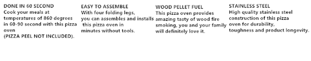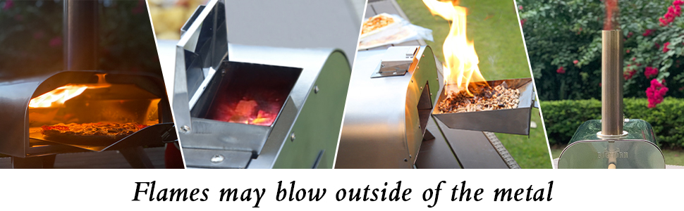 ● Please note that it is normal, when in use, the coated metal surfaces on the pizza oven may dis-colored due to the heat generated by burning pellet.