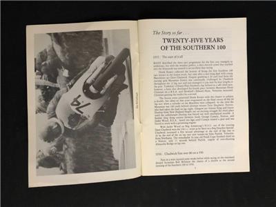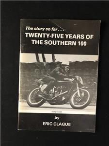 TWENTY FIVE YEARS OF THE SOUTHERN 100 ROAD RACE MEETING BY ERIC CLAGUE, 50 PAGES OF THE STORY OF HOW IT ALL BEGAN RESULTS & ILLURSTRATIONS OF SOME OF THE PAST GREATS RACING AT THE SOUTHERN 100 ROAD RACE. MEASURES 21 CM X 15 CM.