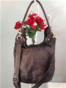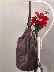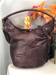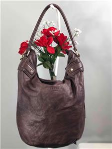 LIEBESKIND Berlin "Vanessa" Dark Purple Leather Hobo Bucket Shoulder Bag