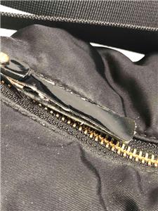 Condition is good with some defects. Some white stains on the bottom of the patent leather. Visible rips on the zipper pull back of the main compartment. Slightly stains on the interior lining. Both interior and exterior are clean. No other visible damage or defects.