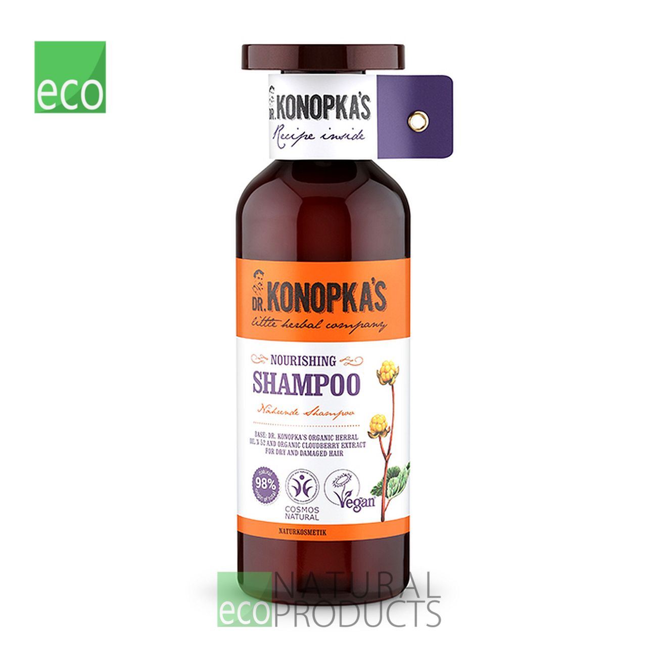 Natural certified Nourishing hair care line contains Dr. Konopka’s N52 special herbal hair oil certified under BDIH COSMOS Natural standard, and organic cloudberry extract, which help to repair, nourish and strengthen dry and damaged hair making it more shiny and elastic.
