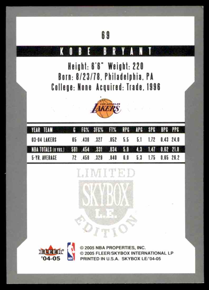 | 2004-05 Skybox Limited Edition 69 Kobe Bryant Nm |