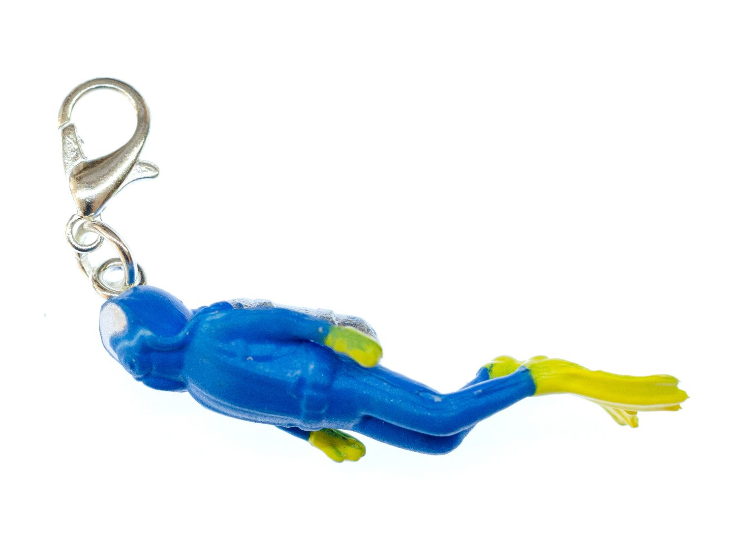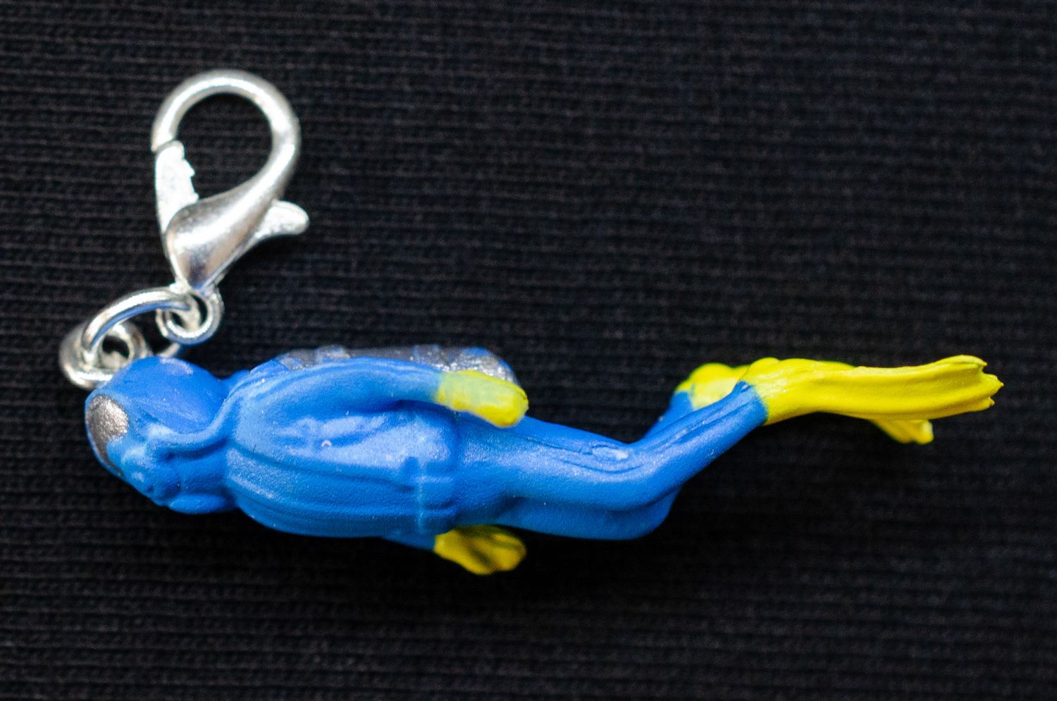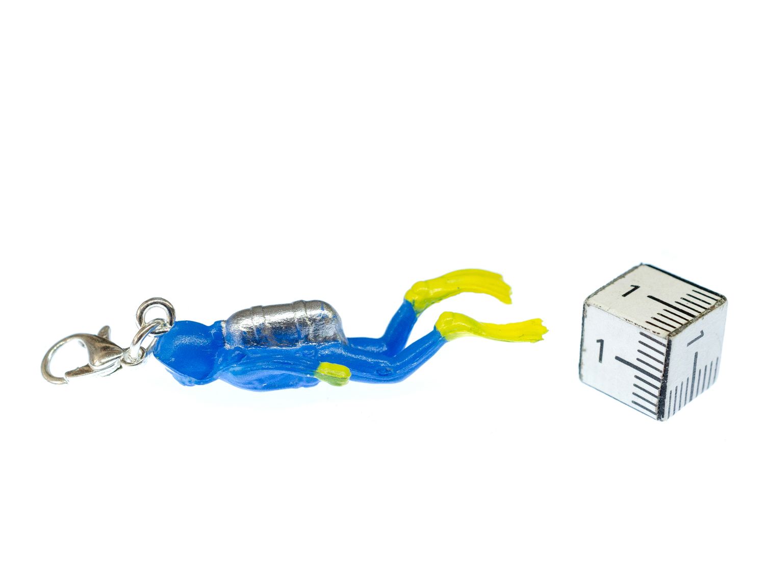 Kleiner blauer Taucher als Anhänger für Reißverschluss und Bettelarmband.