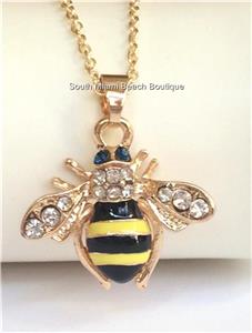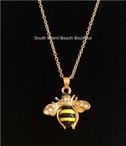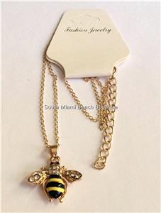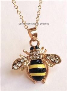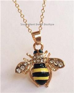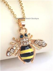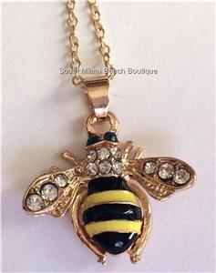 Gold Crystal Bumble Bee Necklace.