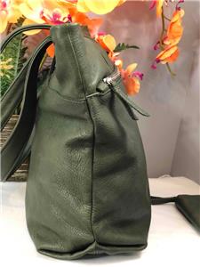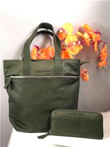 COWBOYSBAG Army Green Leather Shoulder Tote Bag w. Matching Wallet