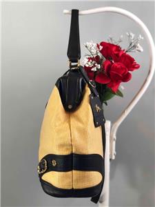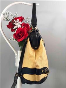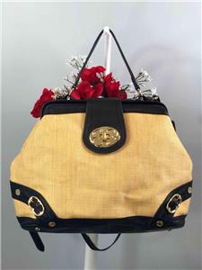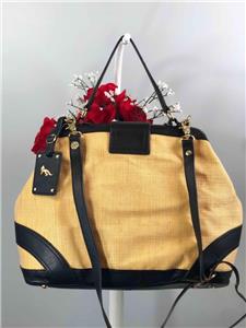 EMMA FOX Natural Straw with Black Leather Trims Shoulder Satchel Bag