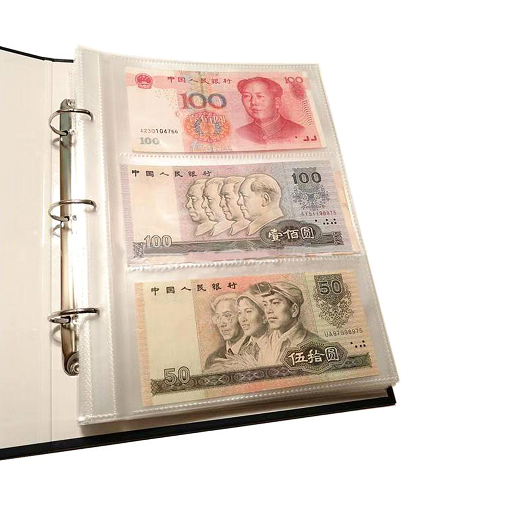 10PC 3 Grids Pocket Paper Money Album Currency Page Banknote Album Collection US