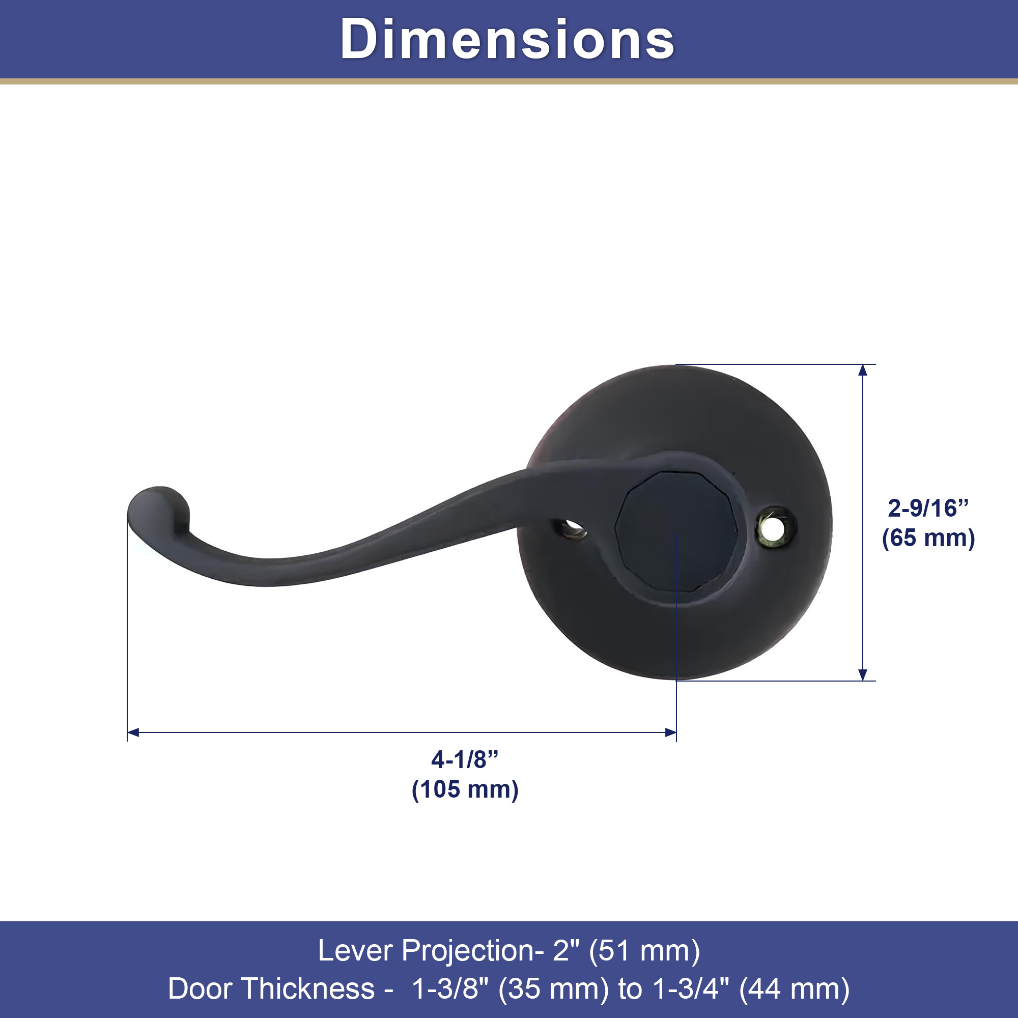 Pacific Heights Door Handle Lever Handleset Trim Lever is made from strong metal with an oil rubbed bronze finish. The 4-1/8" lever height and 2" projection offer a comfortable grip. Featuring a 2-9/16" rosette, it fits door thickness from 1-3/8" to 1-3/4". The lever is always free for easy operation and is reversible for right or left hand doors. Ideal as a lever handle, door handle, handle trim, or pull handle in residential and commercial settings. Includes mounting hardware for secure attachment and straightforward installation.