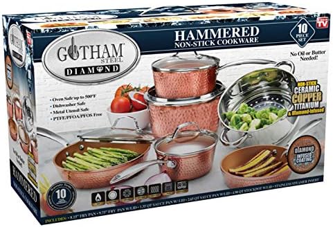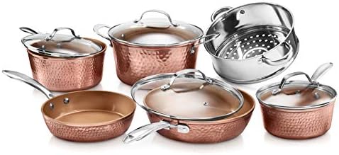 Gotham Steel Hammered Collection – 10 Piece Premium Cookware Set with Triple Coated Nonstick Copper Surface, Oven, Stovetop & Dishwasher Safe