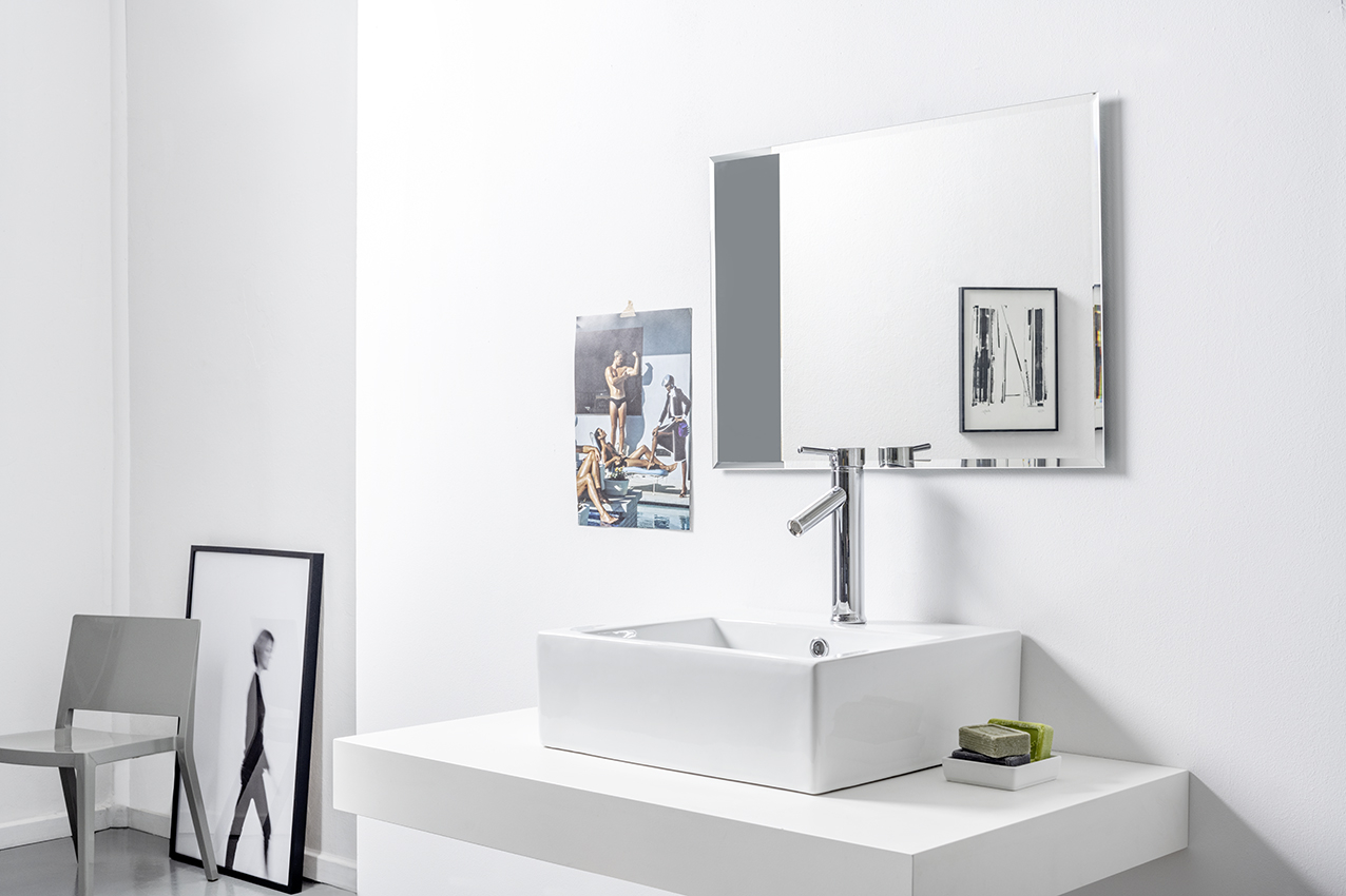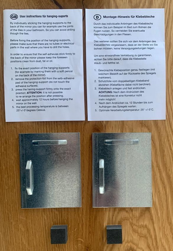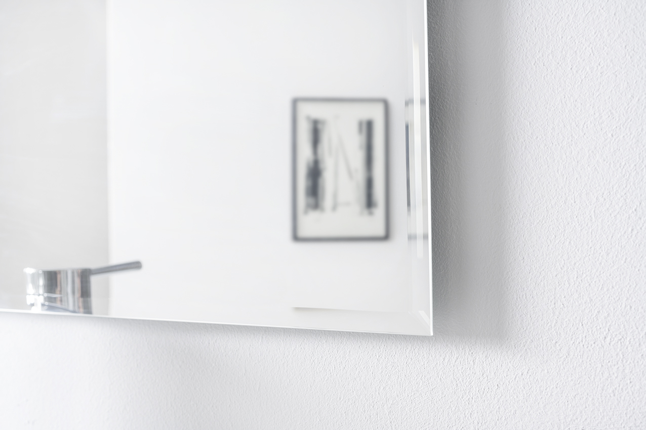 - Der rahmenlose Spiegel wird mit zwei Klebeblechen und zwei Abstandshaltern geliefert | Verfügbare Maße: 40x50 cm | 40x60 cm | 50x70 cm | 60x80 cm | 80x80 cm