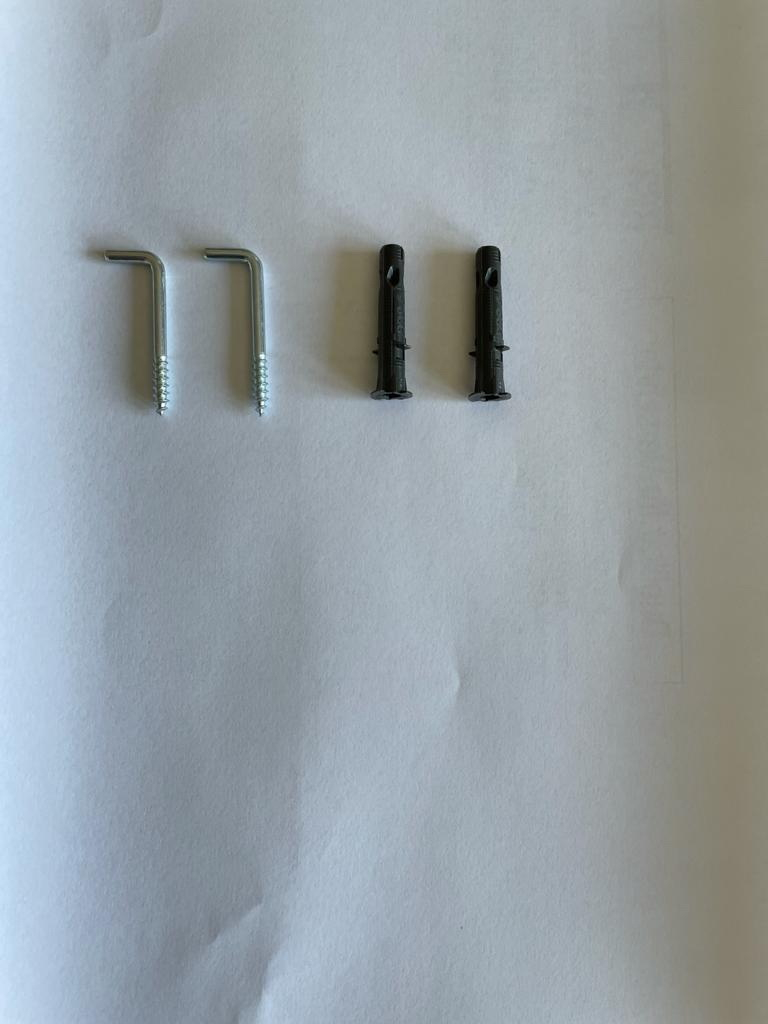 - Im Lieferumfang sind 2 Dübel und 2 Haken für die Montage an der Wand enthalten