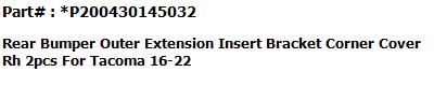 #2 REAR BUMPER END SUPPORT (CORNER COVER) RH.
