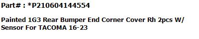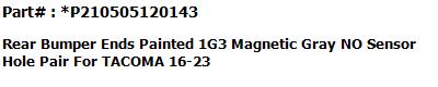 #1 REAR BUMPER END PAINTED Magnetic Gray Metallic 1G3 W/O SENSOR HOLE RH