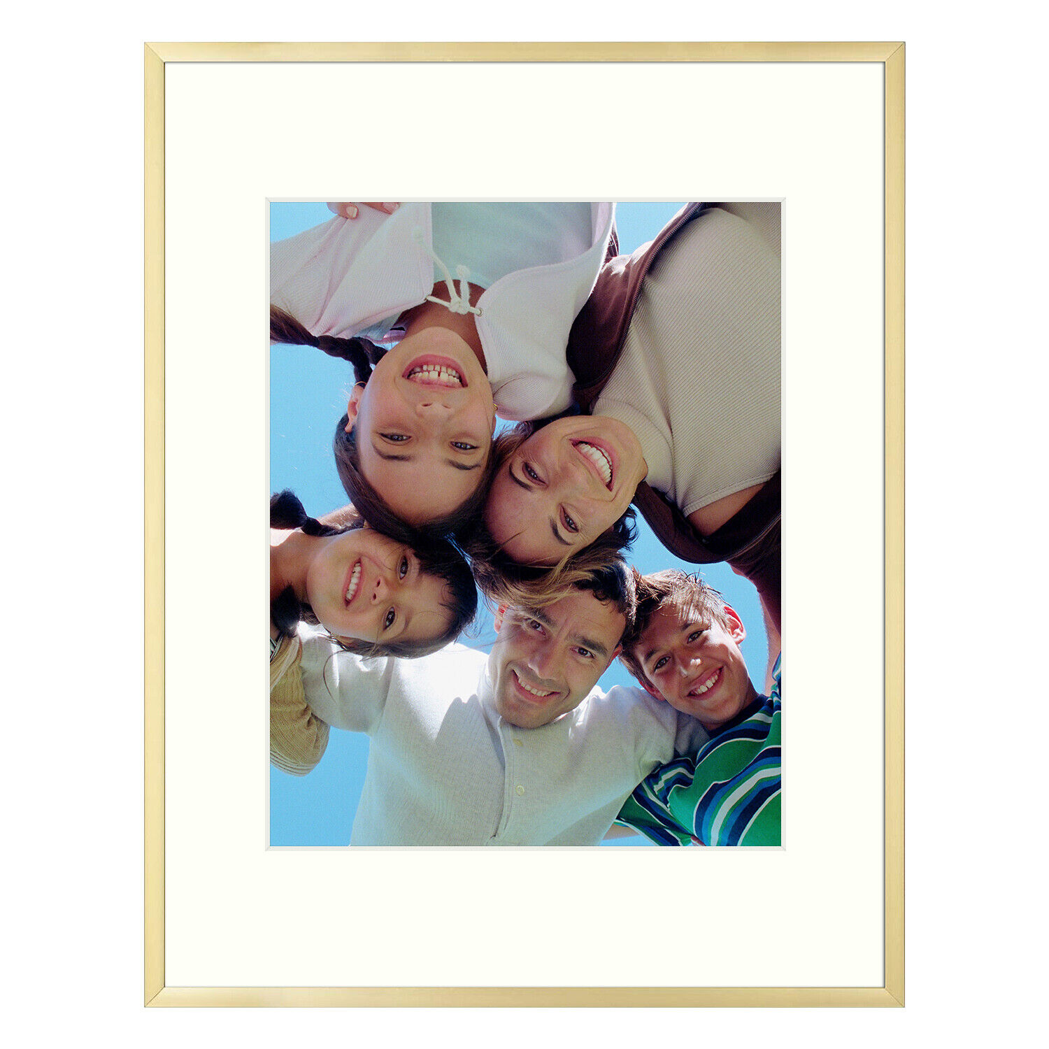 These Aluminum Gold picture frames feature strong aluminum construction and modern backing. They are a wonderful choice for a home, office, wedding or anniversary gift. Overall Frame size: 16.4x20.4inches. Frame includes a Ivory mat. Opening size: 10.5 x 13.5 inches. For Pictures: 16x20 (without Mat) or 11x14 Picture (with Mat). The back includes 2 hangers for vertical and horizontal hanging options. Contains Real Glass.