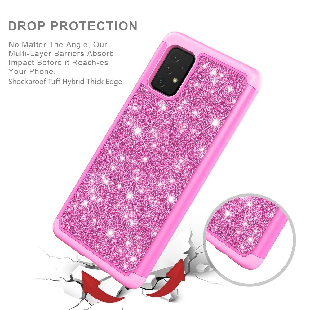Phone Case for Galaxy A72 5G Glitter Bling Sparkle Shinny Hybrid Luxury Crystal Full-Body Shockproof Heavy Duty 2 in 1 Hard PC & Soft TPU Rugged Bumper Shockproof Protective Phone Case Cover.