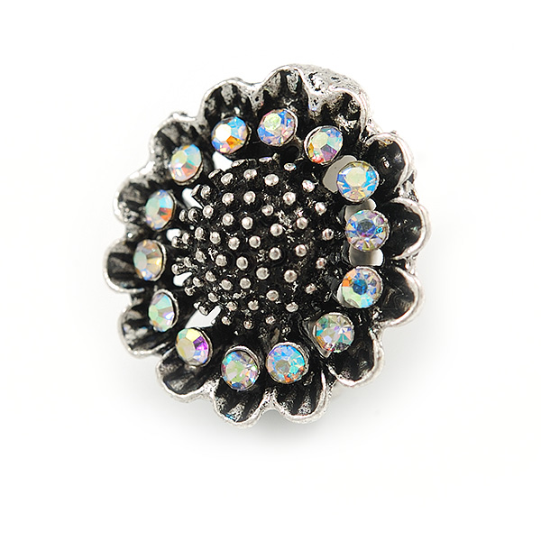 Featuring a sunflower design, crafted in aged silver tone metal and garnished with AB crystal accent.