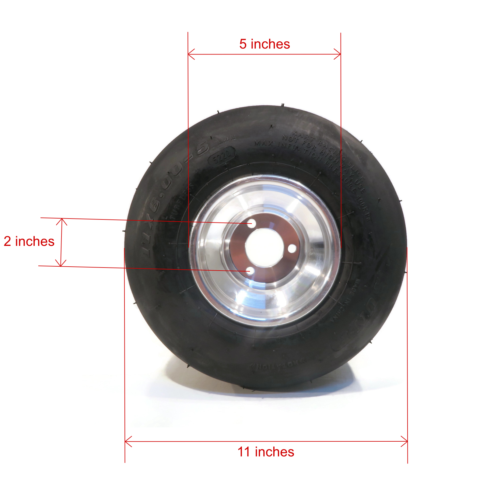 • Includes - (1) Racing Slick Tire (11x6.00-5) with Aluminum Wheel; comes as shown in the first image
