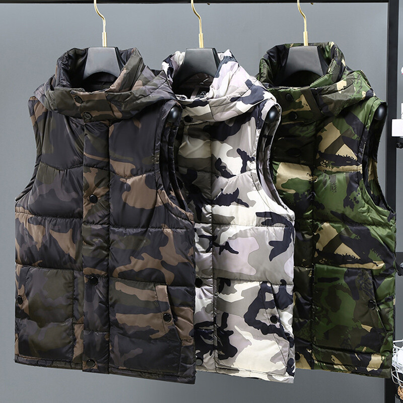 Männer Puffer gesteppt Kapuze Weste warm metallisch glänzender Gilet -Blasenjacke Mantel
