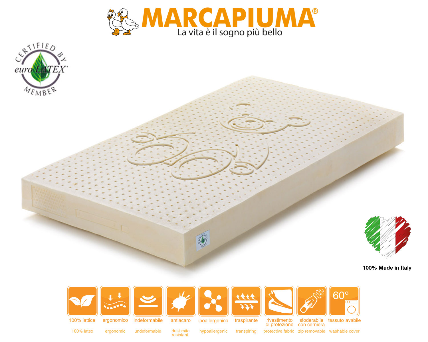 Materasso per bambino composto da Lattice 100% di Prima Qualità alto 12 cm.