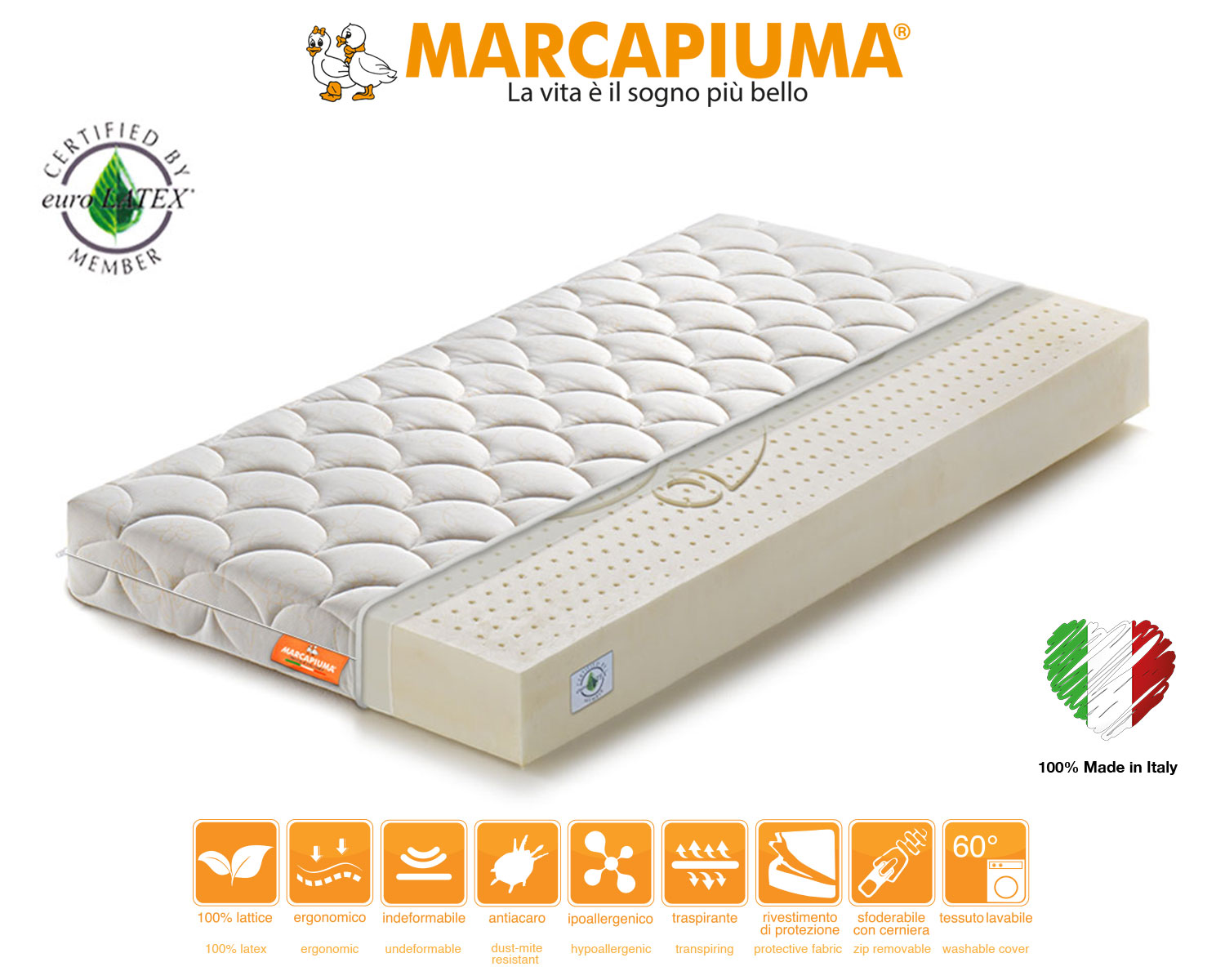 La struttura del materasso è composta da un unico blocco indeformabile di Lattice forato, materiale ad alta densità con oltre 50 Kg/m3, traspirante, antibatterico e anallergico. Il lattice è studiato appositamente per essere utilizzato anche da neonati e bambini, garantendo massima praticità e sicurezza essendo un prodotto di origine naturale, eccezionalmente fresco e salutare.