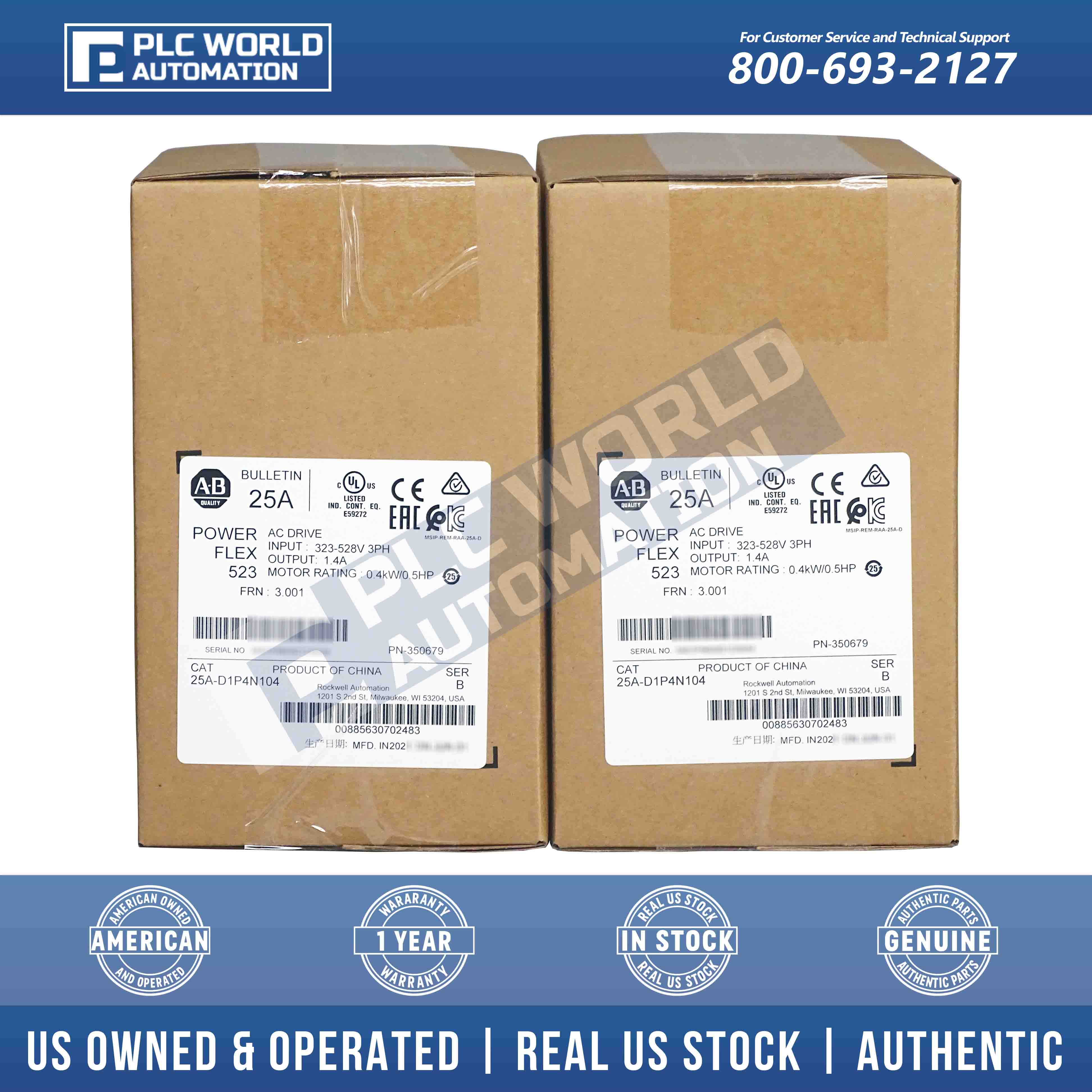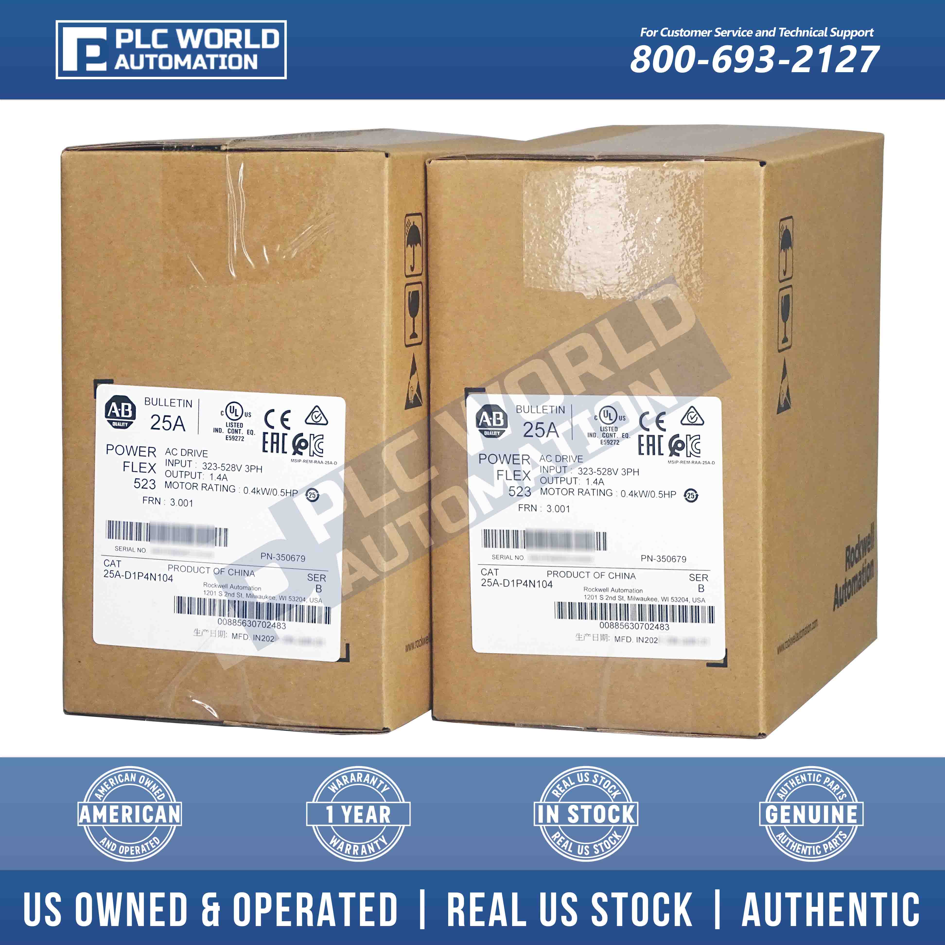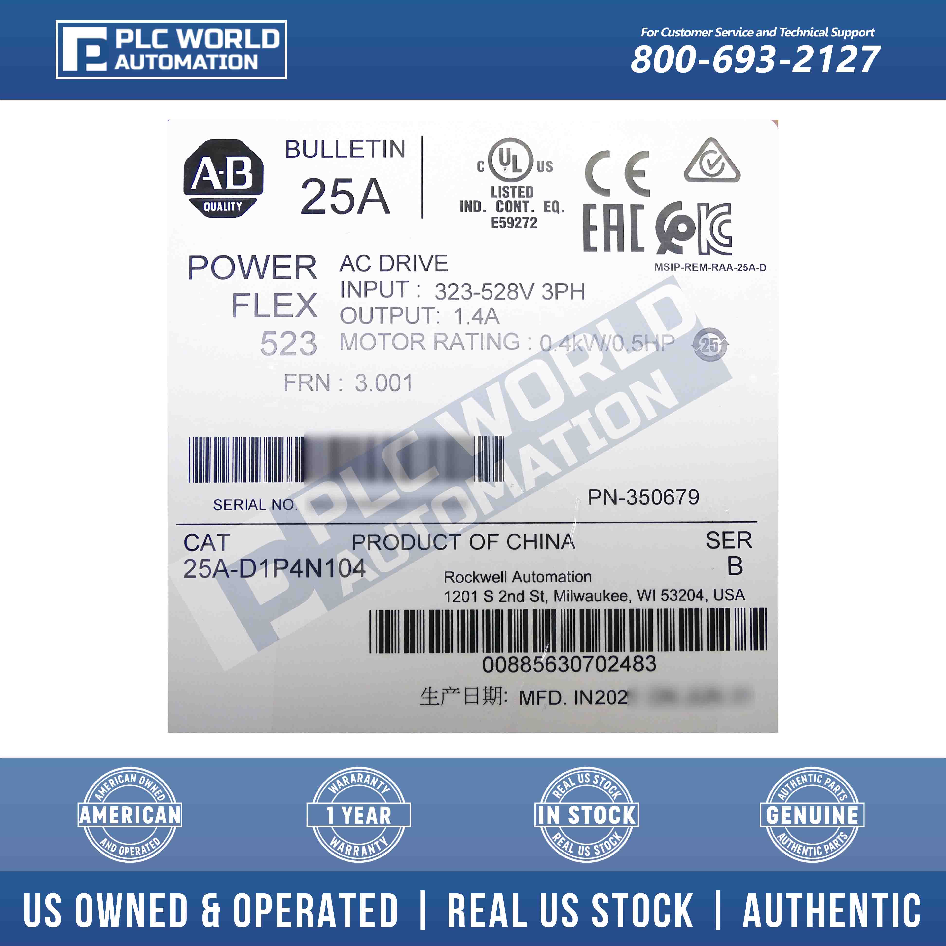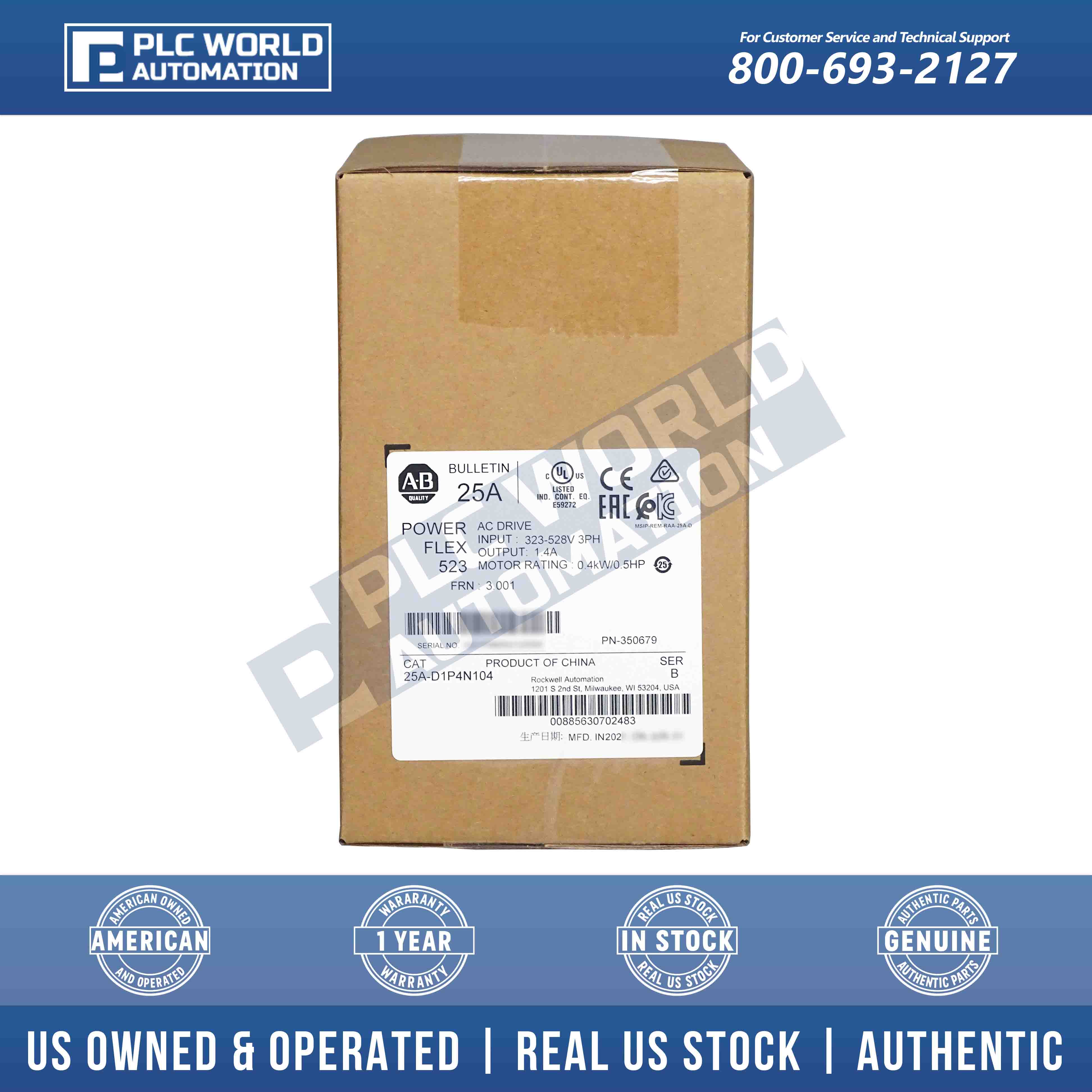 New Factory Sealed Allen Bradley 25A-D1P4N104 Series B PowerFlex 523 AC Drive 0.4kW 0.5Hp