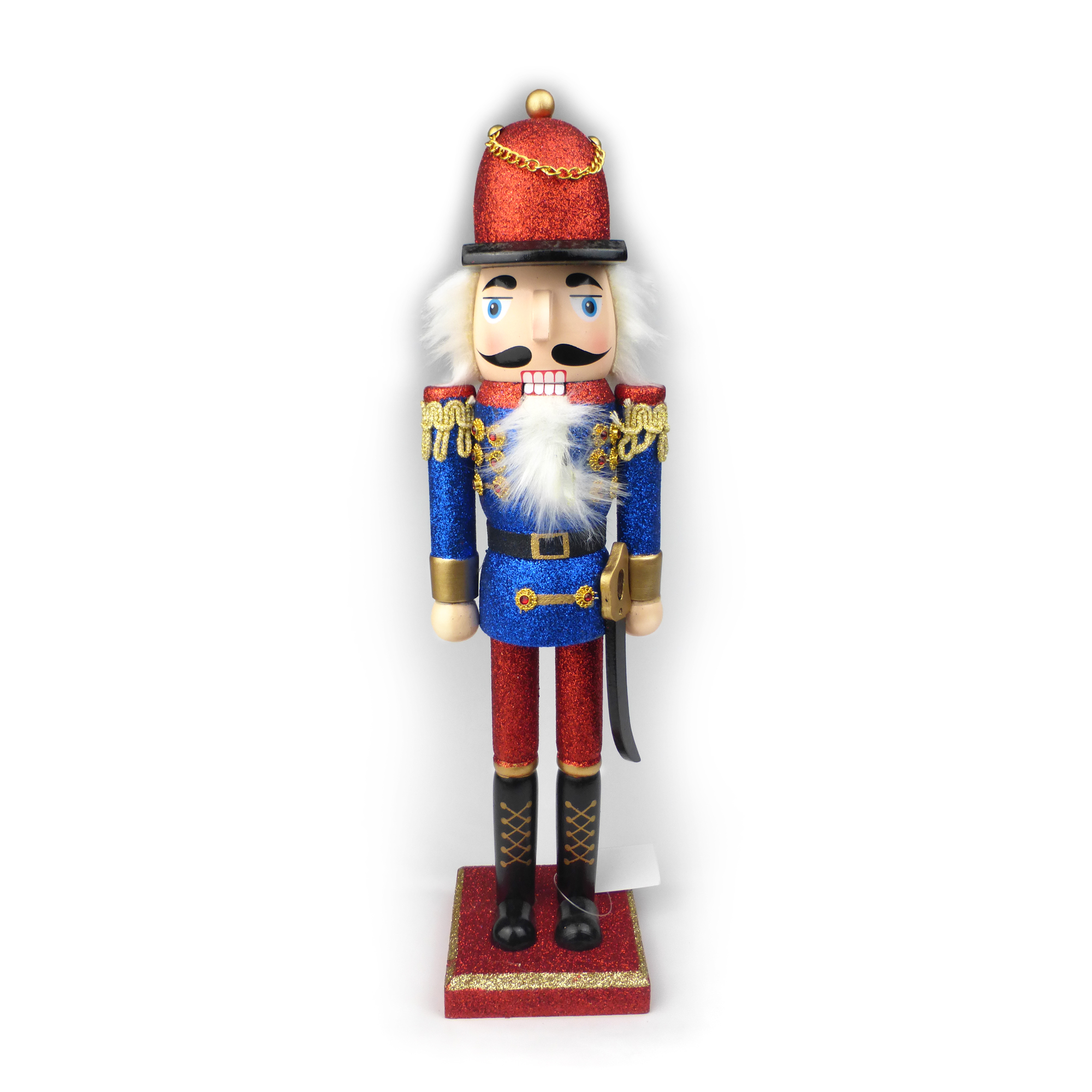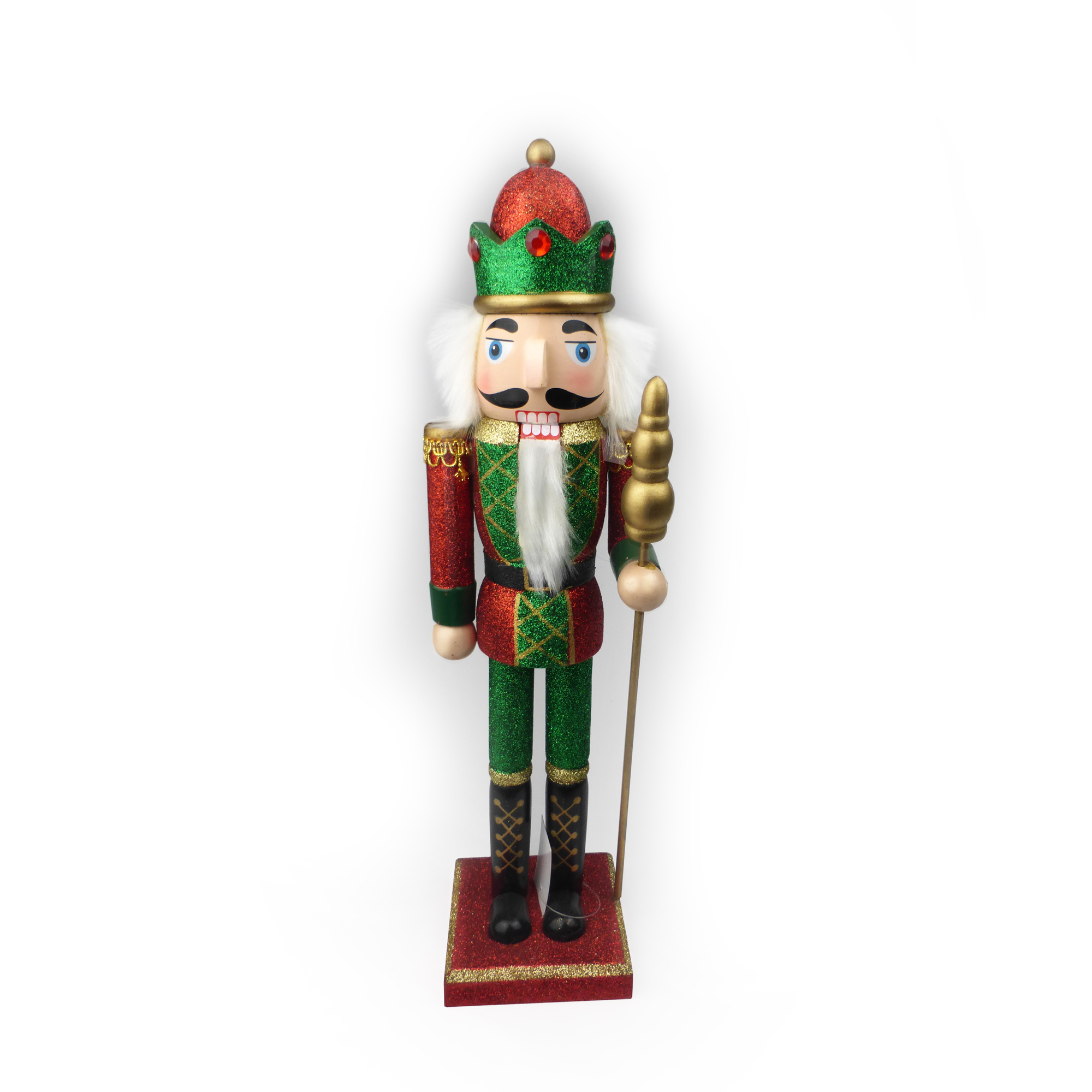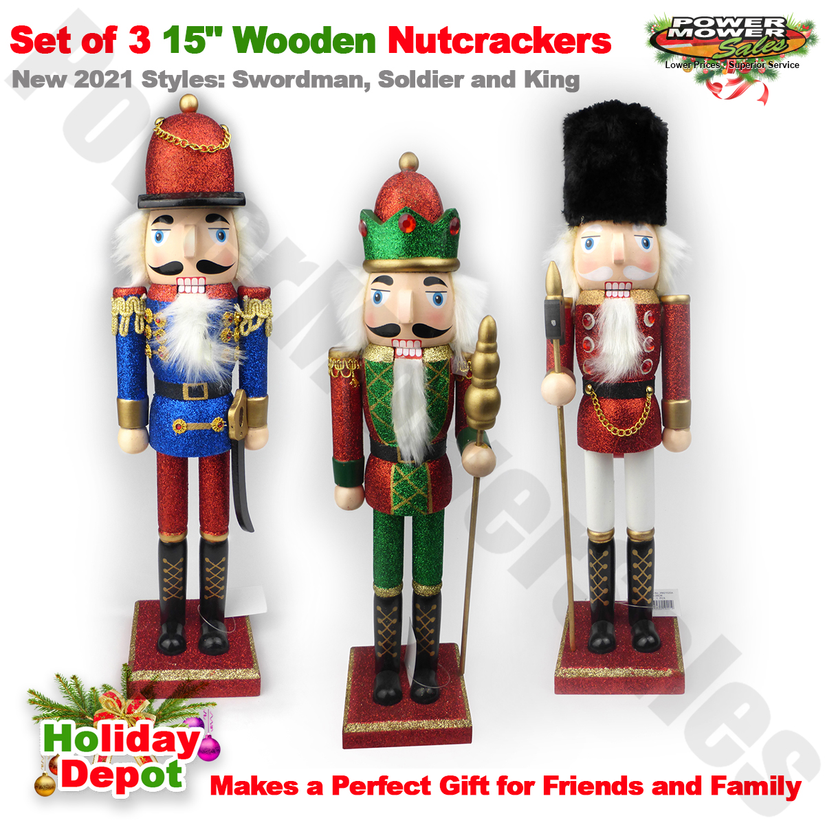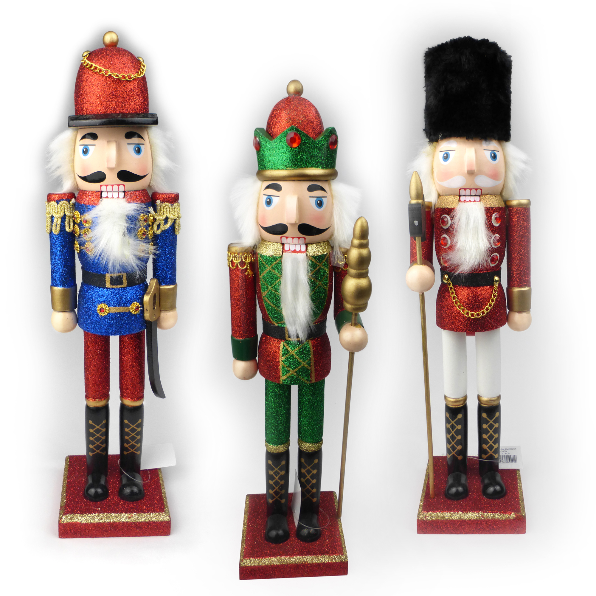 10" Nutcracker Christmas Decoration (Set of 3) - Traditional Wooden King and Soldiers with Glitter Styles. For Friends, Family, and Coworkers.