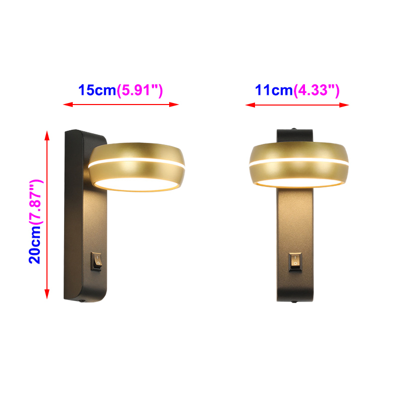 6W LED Headboard Lamp Switch Wall Mounted Light Fixture Adjustable Living